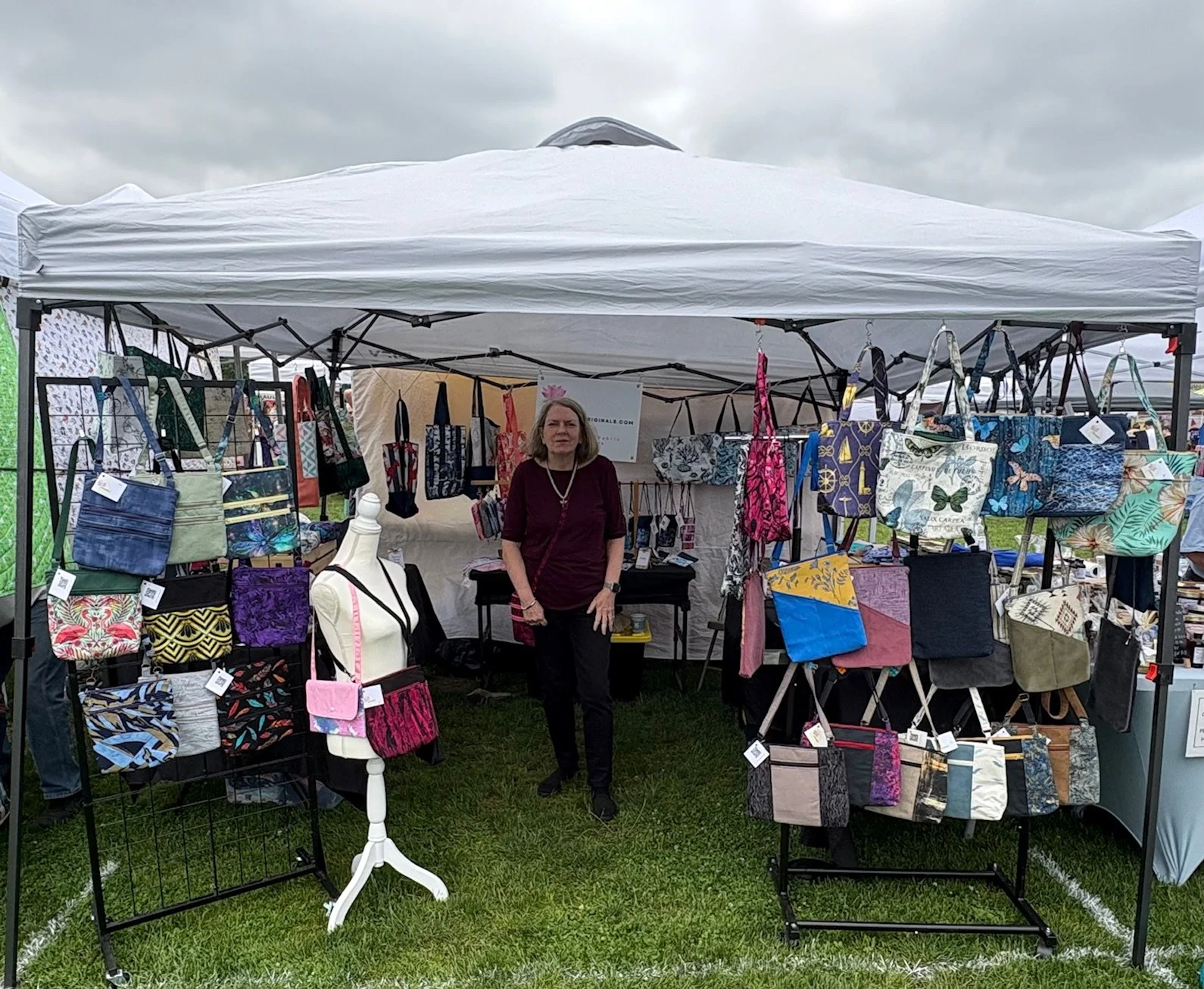 I had some lovely conversations and made a few good sales. It warms my heart when familiar faces return! A mother and daughter who bought from me last year stopped by again, picking out more purses as gifts. They shared how much they loved their previous purchases and were so glad to find me there again – moments like these truly make my day. I also had a great chat with a fellow sewer from Minnesota. We bonded over the universal frustration of Joann Fabric stores closing, especially when it comes to finding those elusive zippers! We ended up exchanging some helpful online resources, which was a real treat.