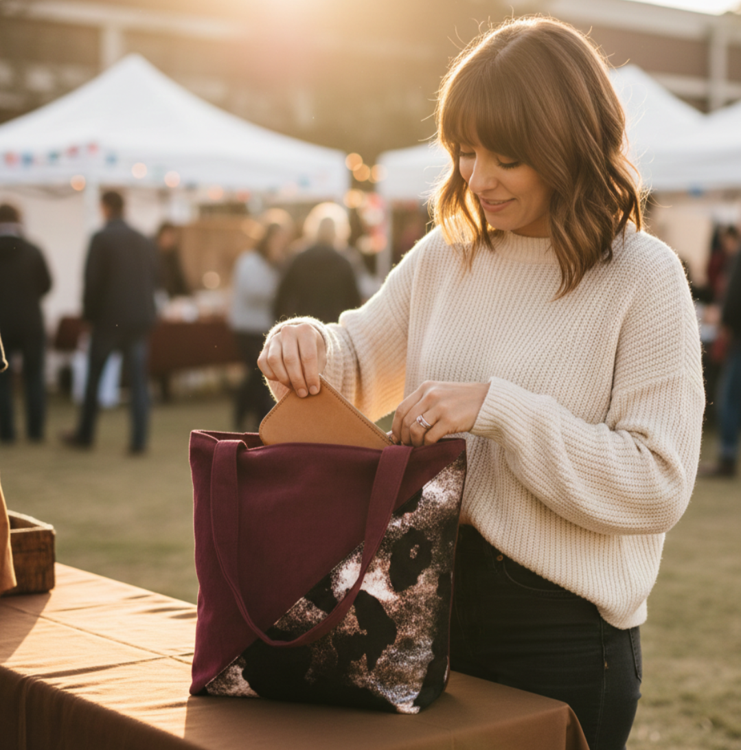 Functional Art: I believe accessories should be beautiful AND practical. My designs are made for real life, with thoughtful pockets, sturdy construction, and comfortable wear.